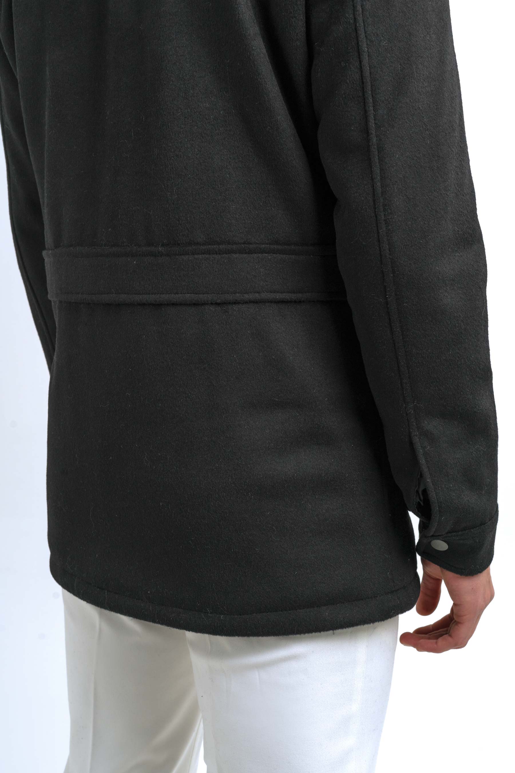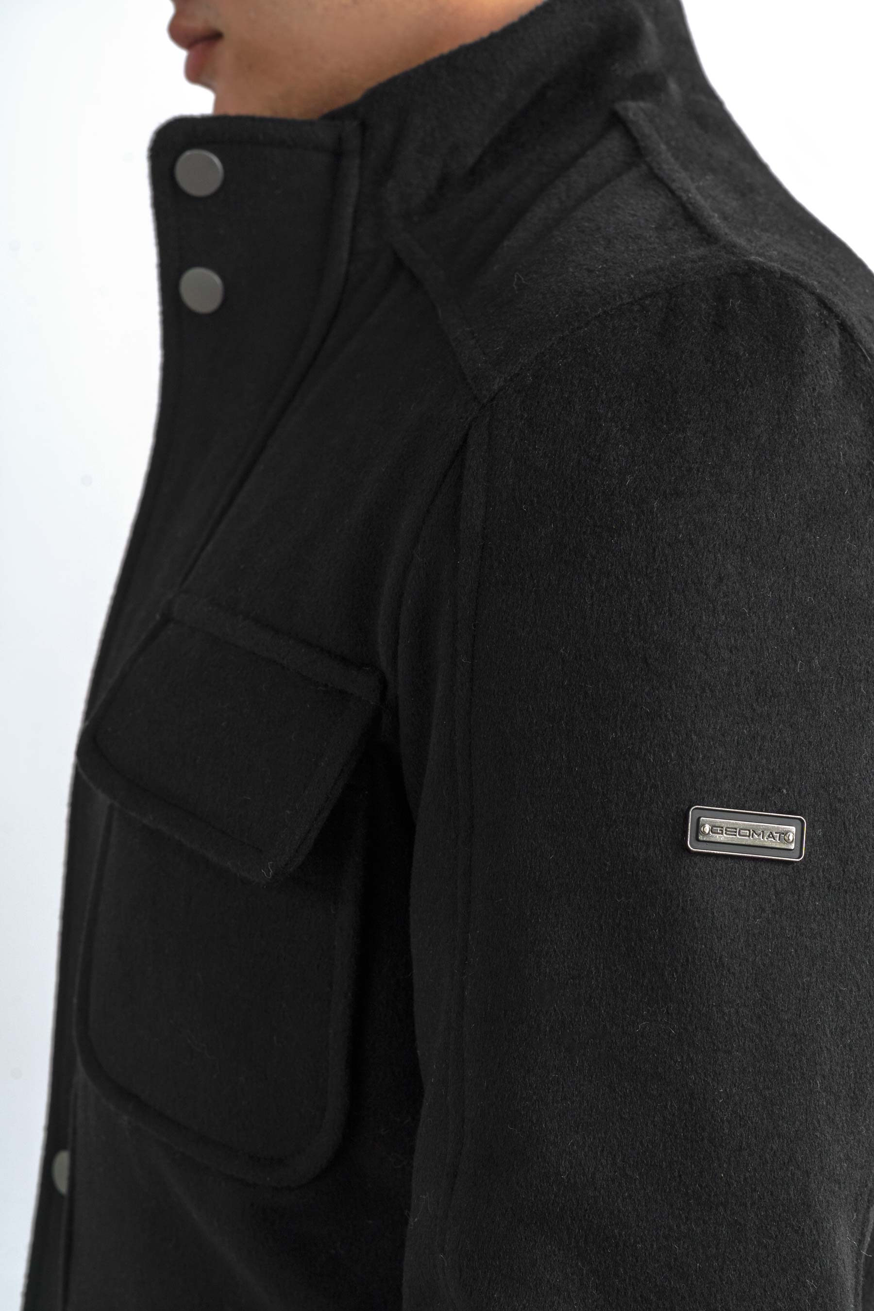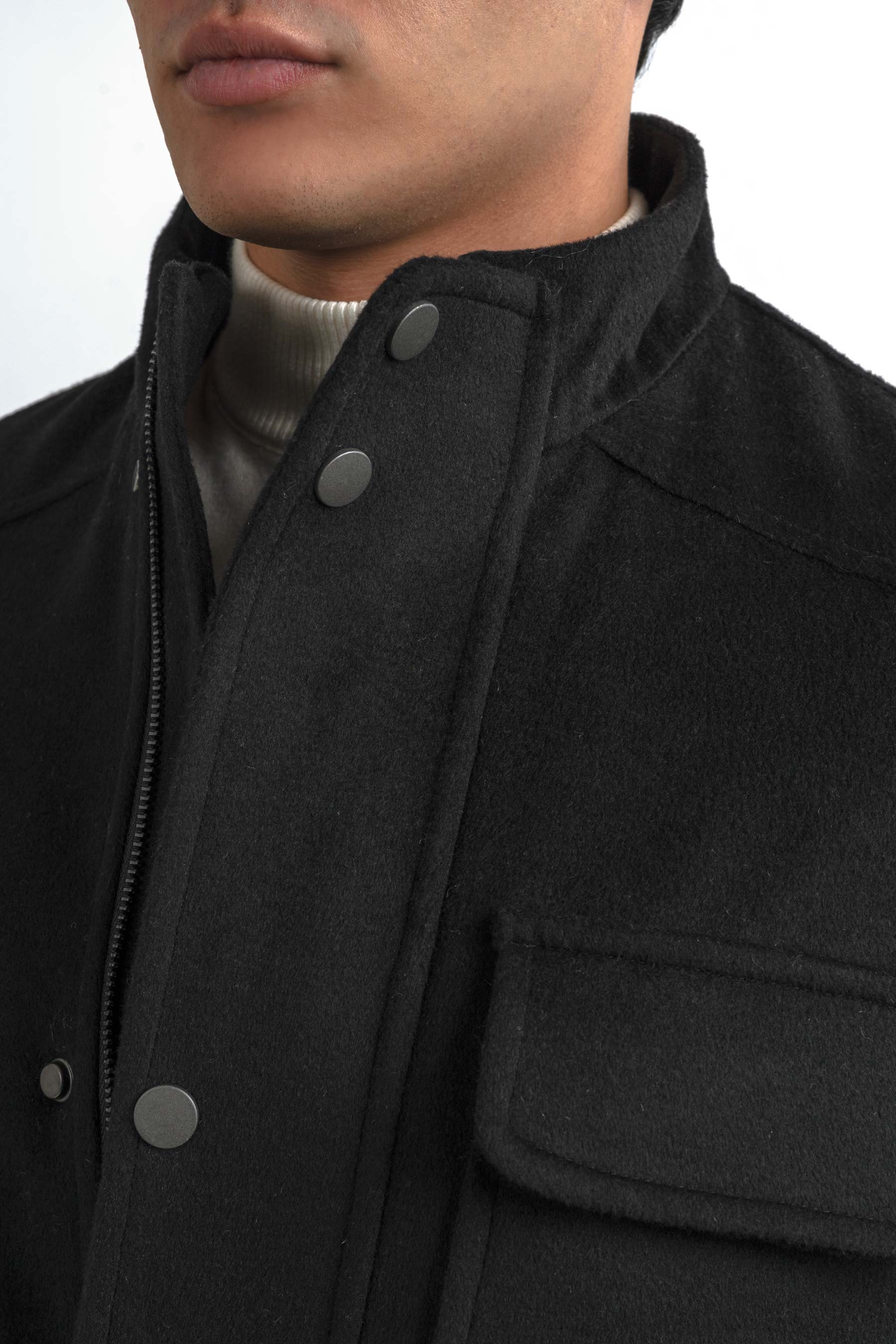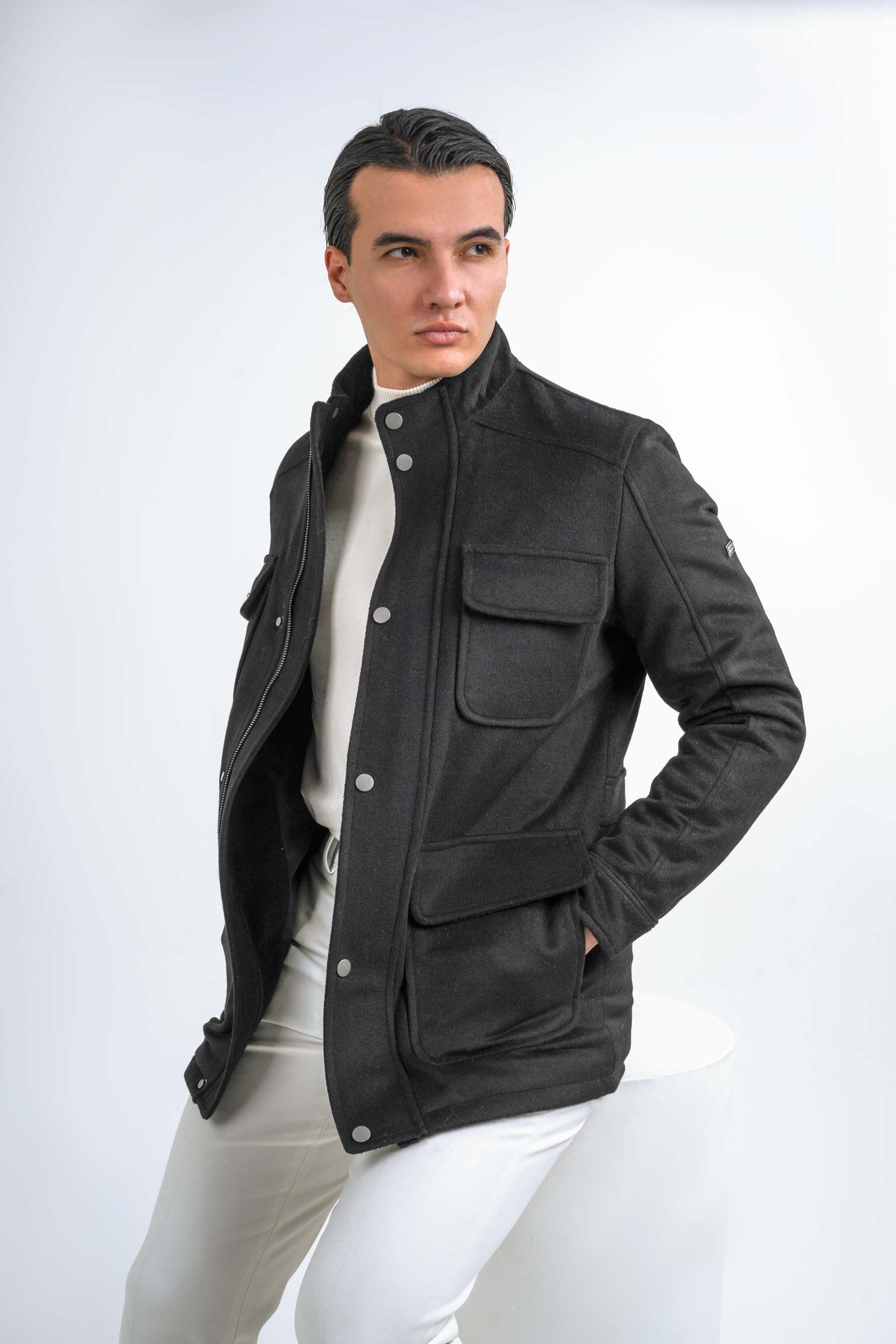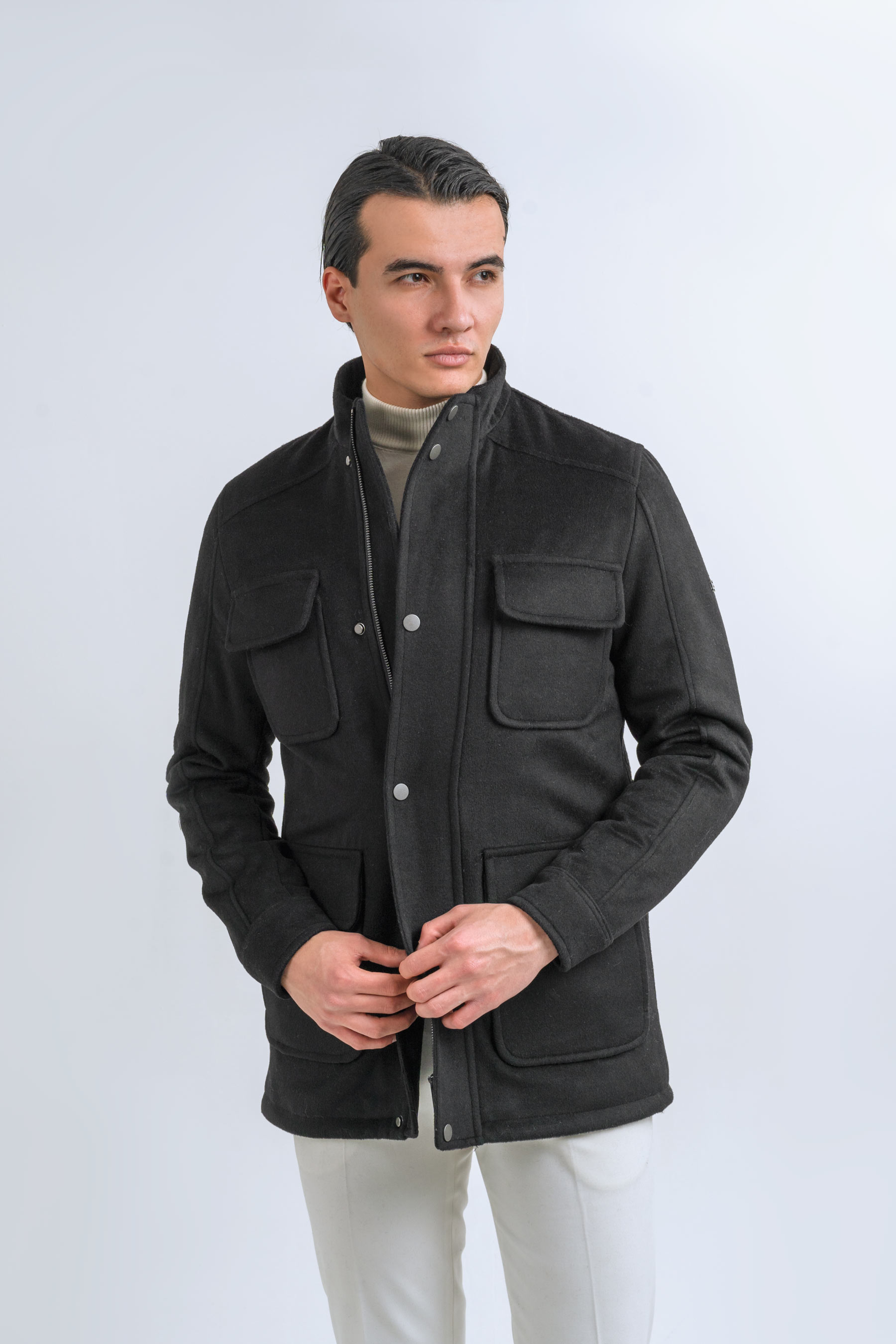 این اورکت دارای فیت استاندارد (Regular Fit) است؛ نه بیشازحد جذب و نه آزاد، بهگونهای که روی بدن خوشفرم میایستد و امکان لایهپوشی با بافت، یقهاسکی یا پلیور را بهراحتی فراهم میکند. طراحی یقه ایستاده، خطوط عمودی دوخت و طول متعادل لباس باعث شده فرم کلی اورکت شیک، کشیده و مرتب دیده شود. ساختار پارچه به حفظ ایستایی کمک میکند و در طول استفاده دچار افت فرم نمیشود.