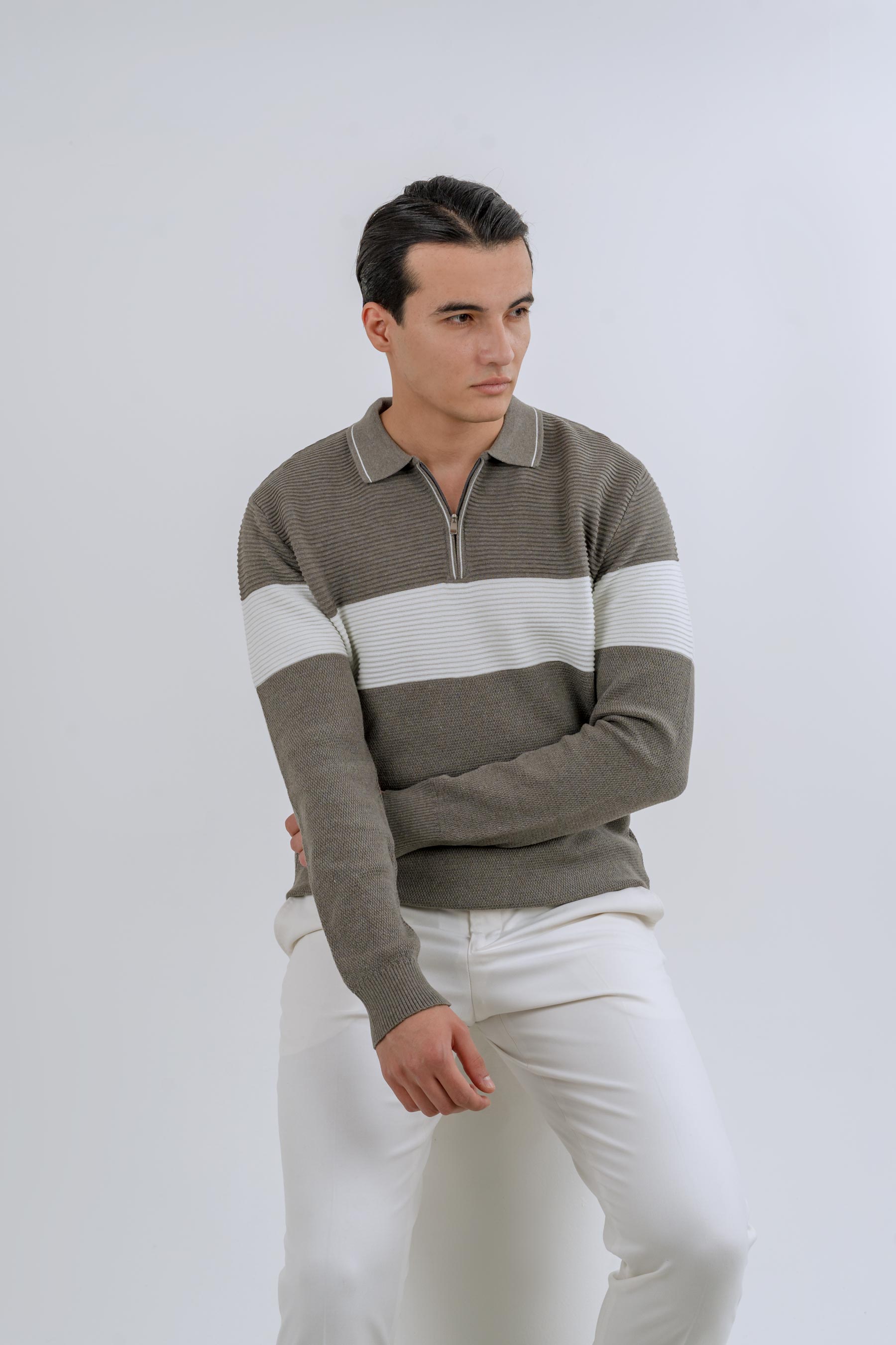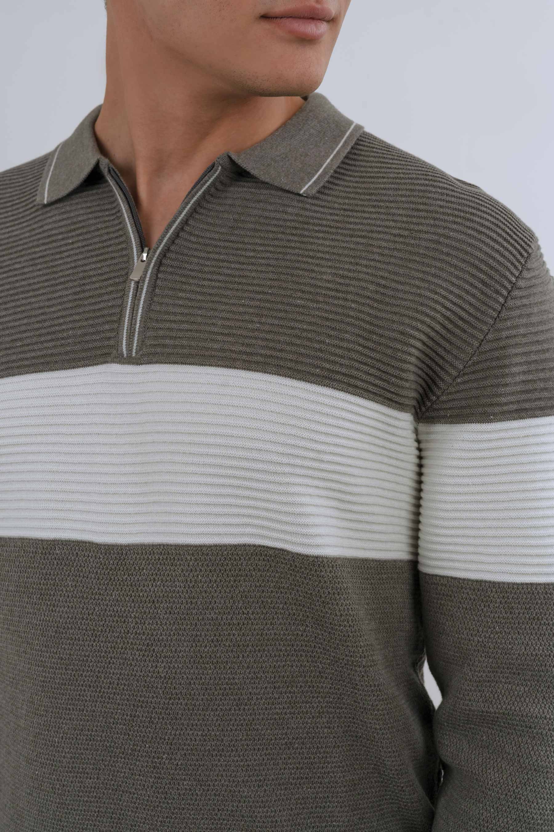 بافت حصیری یقه نیم زیپ طرحدار (4038)