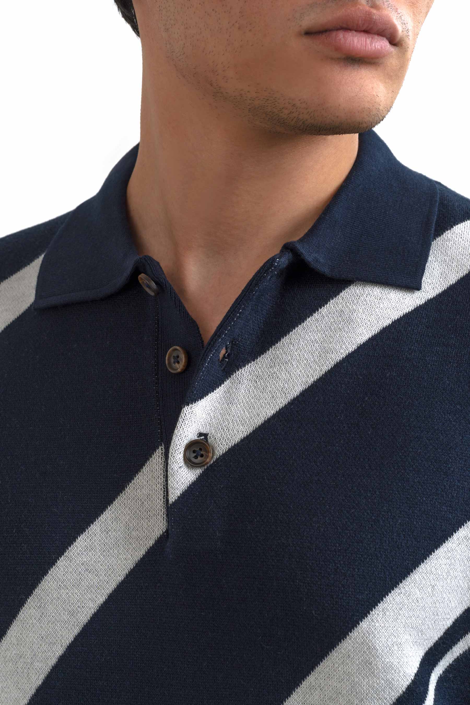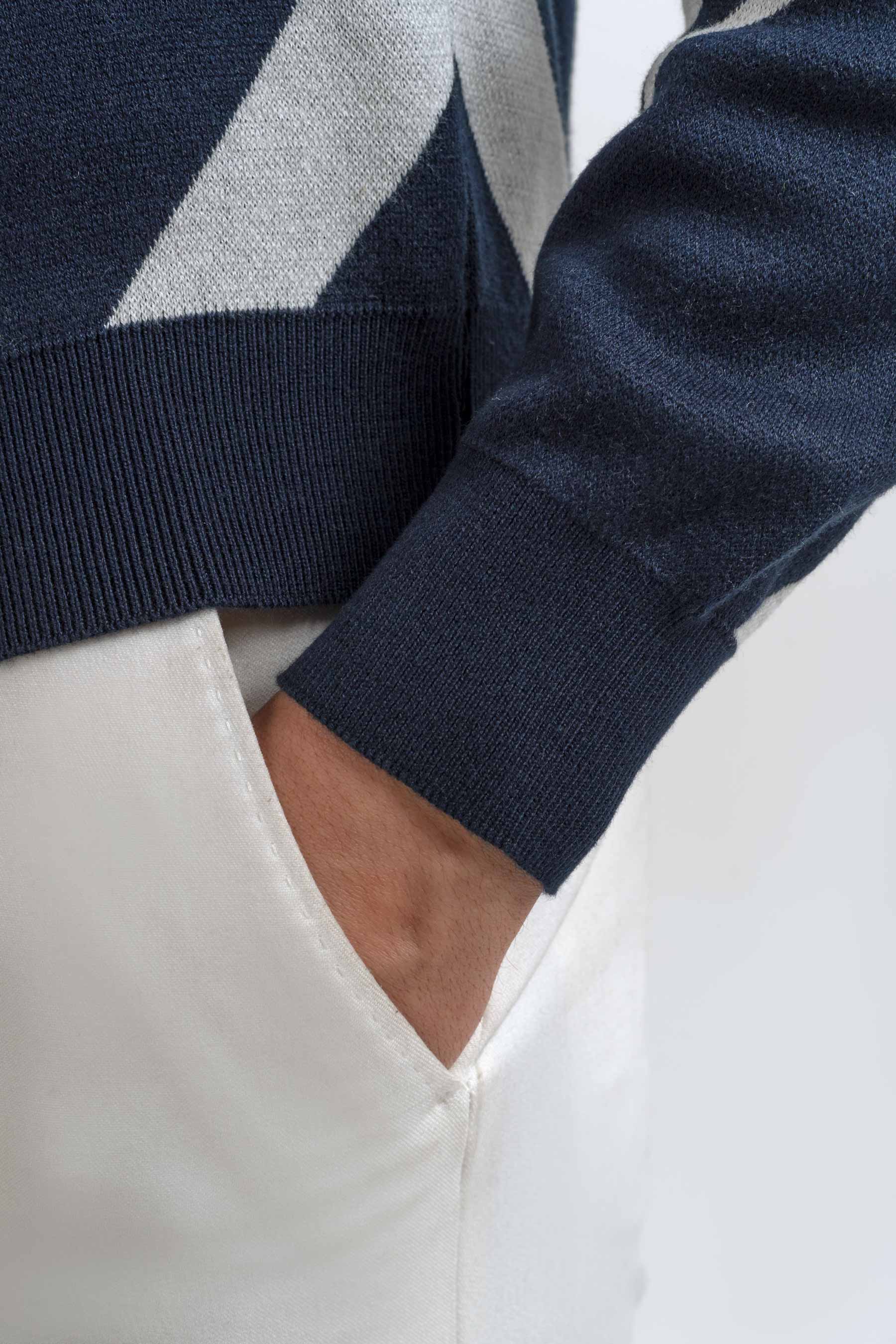 بافت یقه دار3 دکمه طرحدار سرمه ای 4058