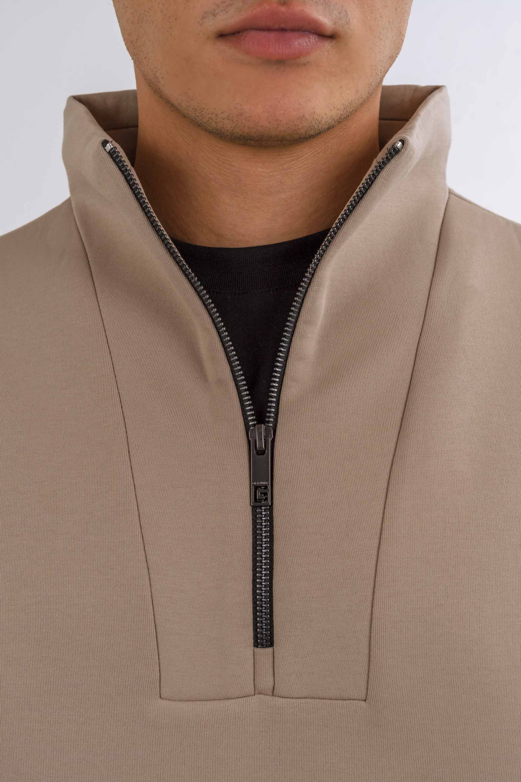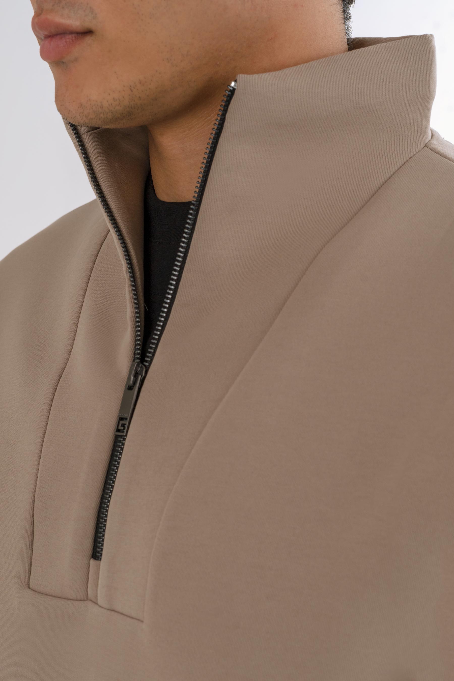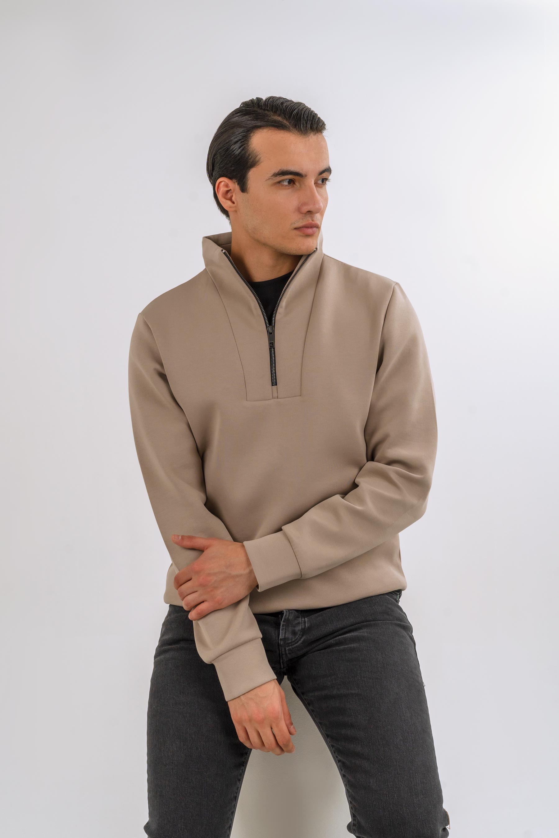 یقهی نیمزیپ با طراحی خاص و برش ساختارمند، ظاهر لباس را متمایز کرده و امکان استفاده در استایلهای نیمهکژوال و روزمره را فراهم میسازد.
