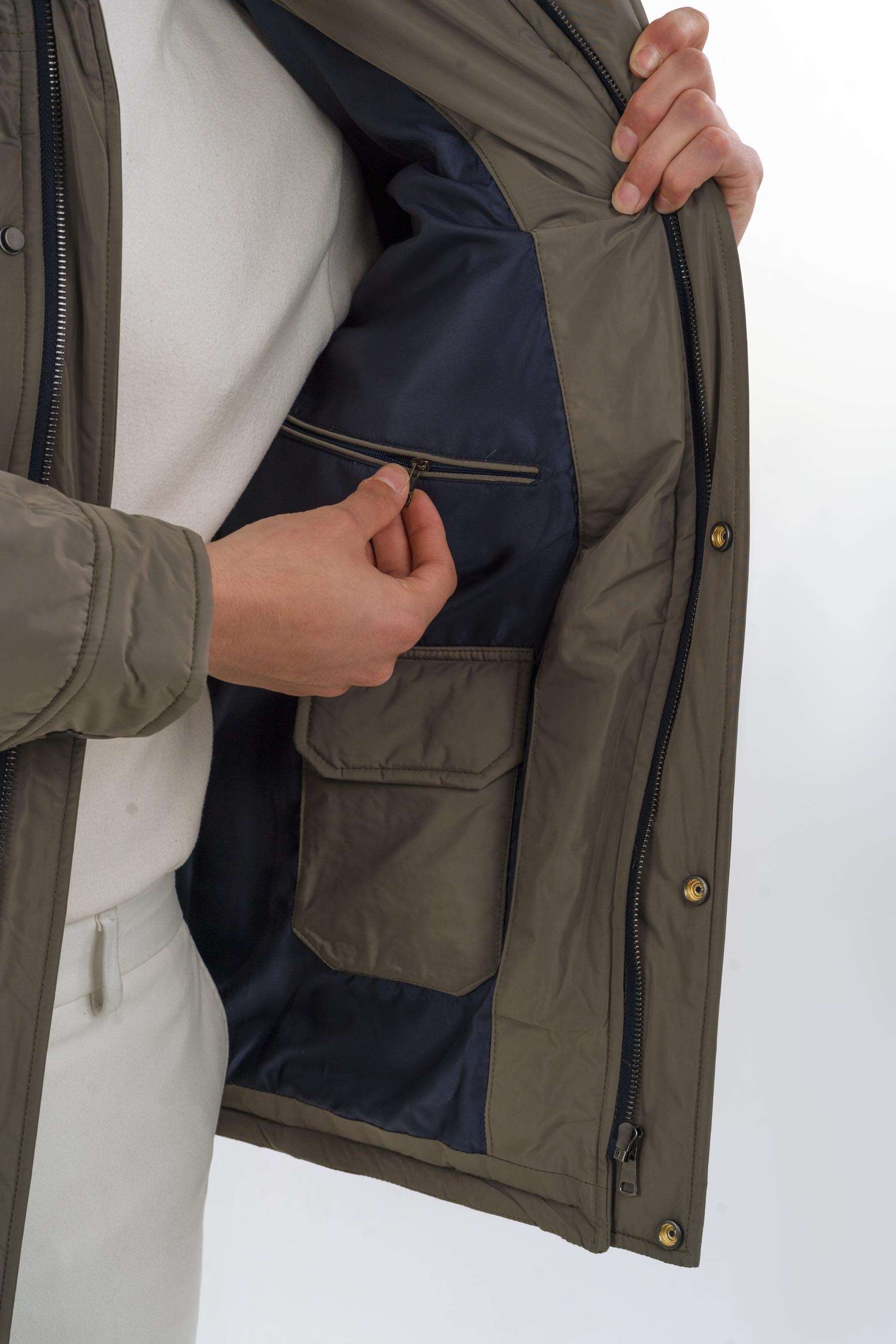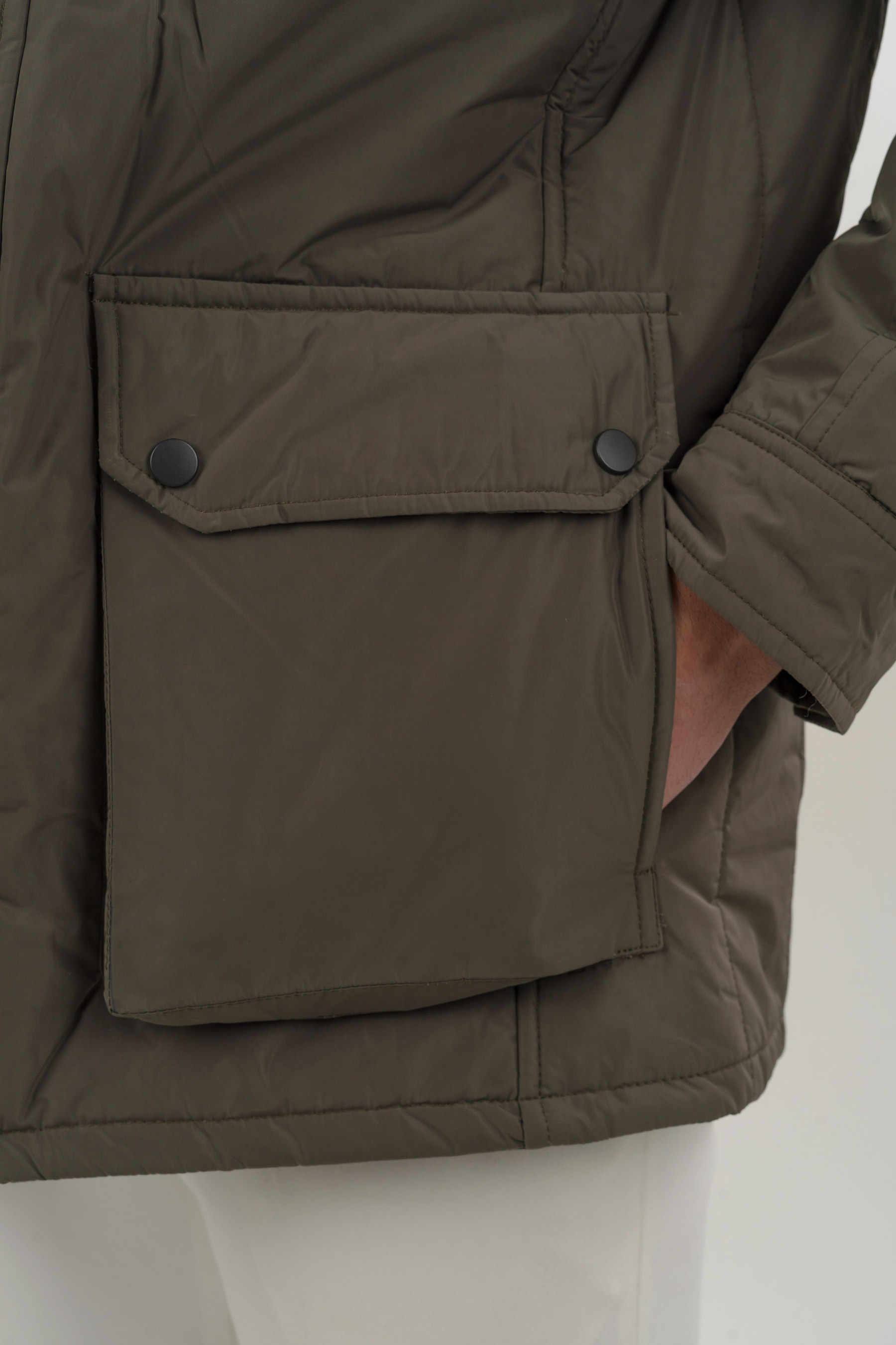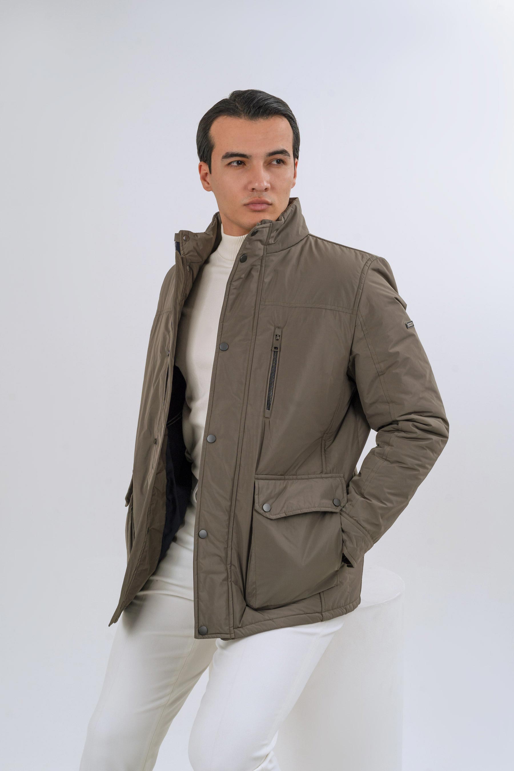 کاپشن شمعی سه جیب زیتونی 01008